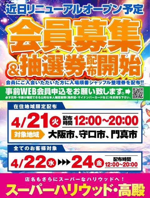 【開店】大阪府大阪市旭区のパチンコ店『スーパーハリウッド高殿』が2026年4月25日よりリニューアルオープン!