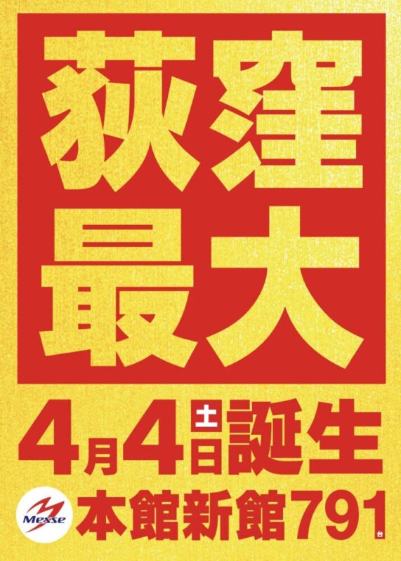 パチンコ215台パチスロ211台の合計426台となっていて、本日2026年4月4日よりグランドオープンを迎えています!